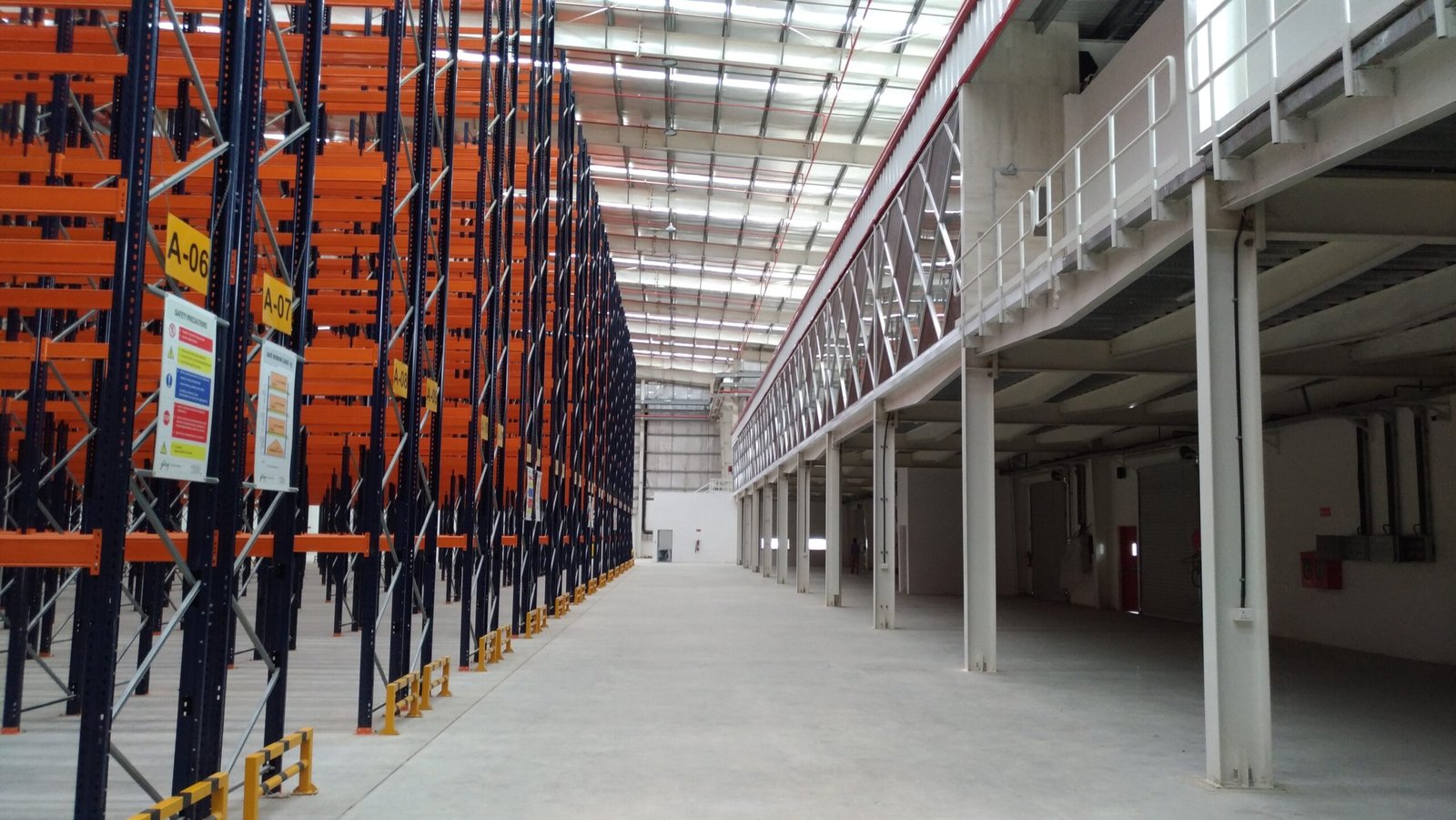 The unit is equipped with 7 EOT cranes (4 cranes – 5 ton capacity and 3 cranes – 2 ton capacity), making it ideal for operations requiring heavy material handling. The shed offers an impressive 40 ft center height and 35 ft side height, allowing smooth movement of heavy machinery and large equipment.
